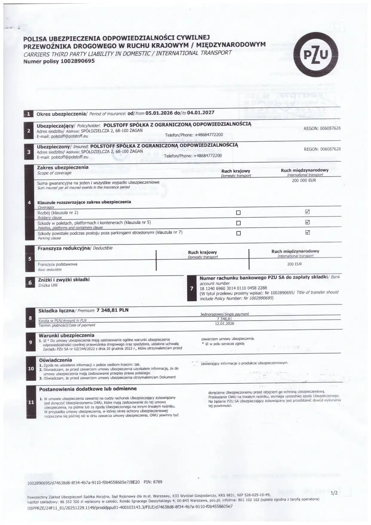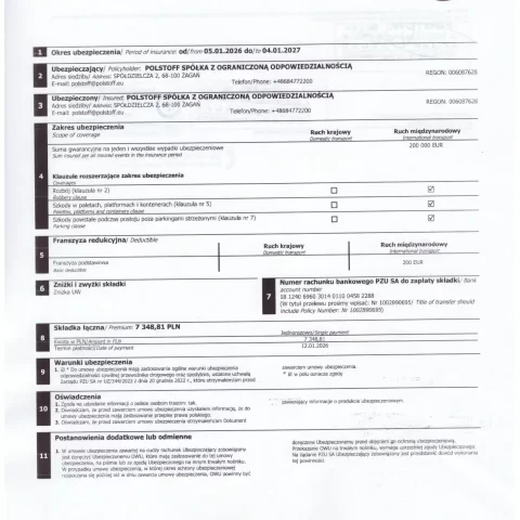 W zakresie transportu tekstyliów